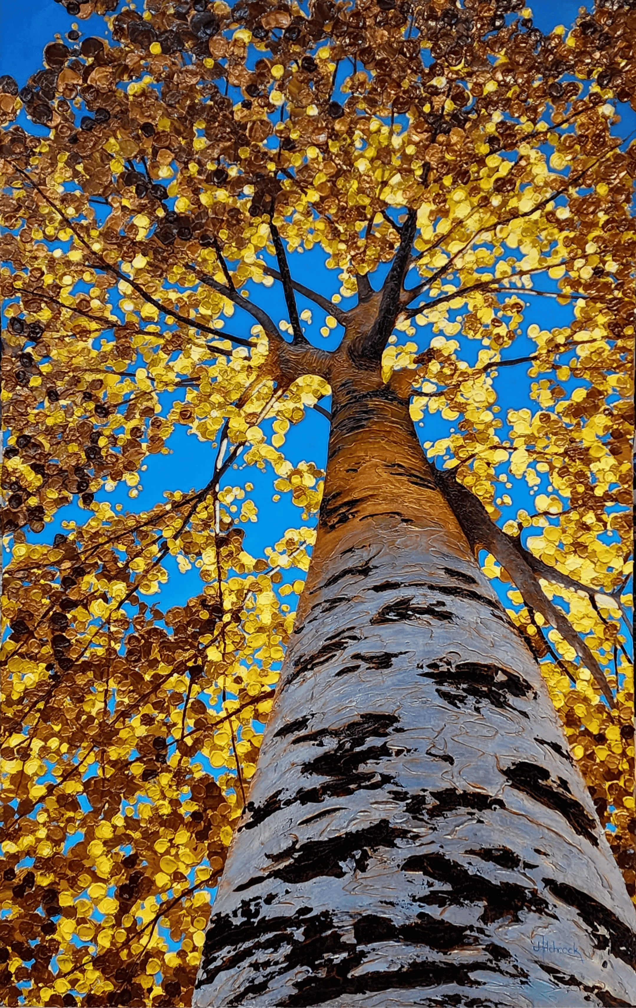 Now, I don’t know about you, but when I first saw this painting, I actually tilted my head back like I was really standing under those birch trees. You almost expect a crunchy leaf to float down and land on your shoulder. That’s how much life and perspective Joan brings to her work.
