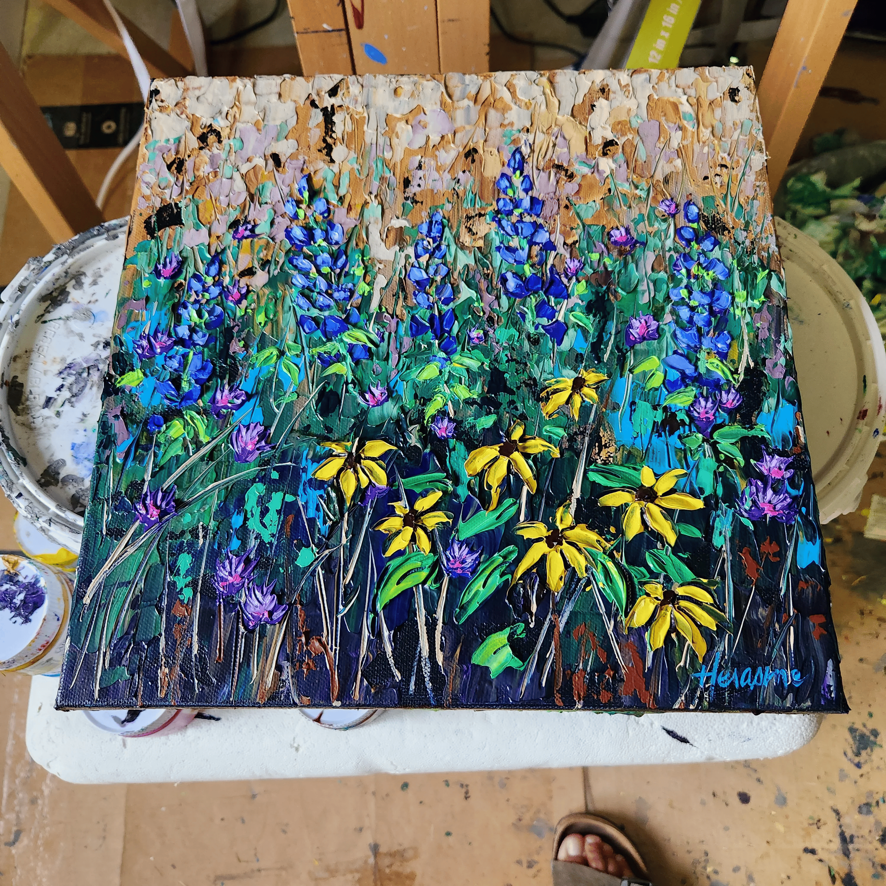 “I enjoy the process of bringing my ideas to life and love the texture! I’m a sculptor at heart, and palette knife painting fulfills my need for dimension.”