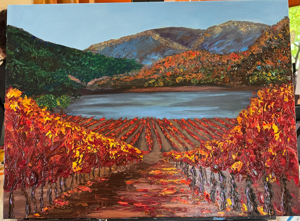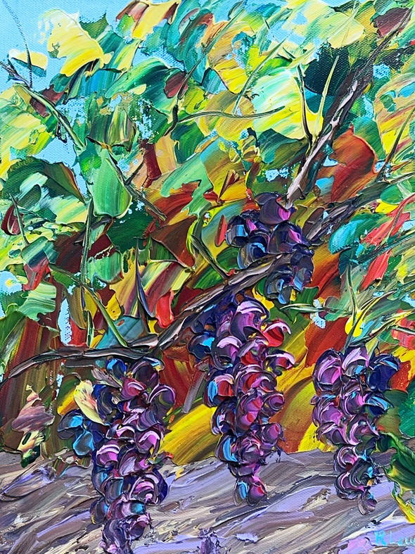 The grape painting was created during a timed event — no time to think, just paint. And you can feel that freedom immediately. It’s vibrant, playful, and full of life. Roxanne said it was a blast to paint, and that joy comes through in every bold stroke.