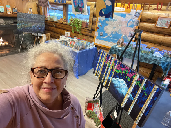 The painting Debora chose to share is especially meaningful. She lived in Alaska for 20 years, and this rugged mountain scene reminds her of the view from her old home, right before the leaves fall and winter takes hold. You can feel that moment of stillness and strength, as if the landscape is taking one deep breath before the snow arrives.