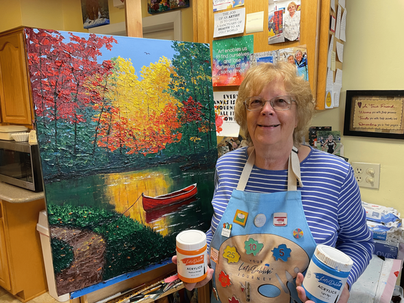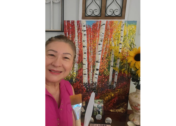 Karen shared, “This art technique was easy and forgiving, and I could develop my own style. Someone once told me, ‘Don’t strive for perfection. Strive for excellence.’ That’s what I feel I can accomplish with palette knife painting under Jen’s tutorage.”