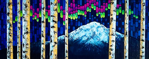 Denielle lives in Alaska, surrounded by breathtaking natural beauty, and that environment absolutely inspires her. But what truly pulls her to the canvas are her emotions, passions, and imagination. That inner landscape is just as powerful as the one outside her window, and painting gives it space to exist freely.
