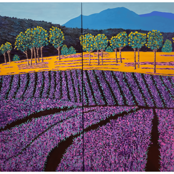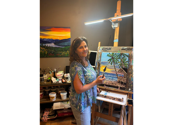 Kathy told me what she loves most is the sense of accomplishment—going from staring at that intimidating white canvas to stepping back and seeing a finished piece. Even when a painting doesn’t turn out as expected, she views it as a “learning piece.” She also loves trying new techniques, like painting palm trees, waves, and lavender fields, and weaving them into future creations. That’s exactly the adventurous spirit that keeps an artist growing.