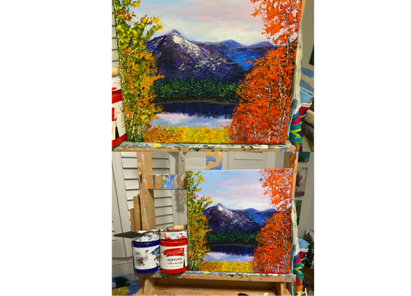 That’s when acrylic painting became her game changer. The versatility, the mediums, the endless creative supplies — she was hooked. And then she saw an ad featuring palette knife painting. Everything clicked. She found her way into our artist family and joined the Let’s Dabble Club, diving into each monthly painting with excitement.