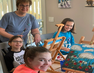 Then came her serendipitous encounter with DabblePaints™ — she saw a little snowman I was painting on an ad for the Dabble Cards, and something in her heart said, yes, that’s for me. That $7 Christmas card kit became her first step into our creative world, and she’s been painting right alongside us ever since.