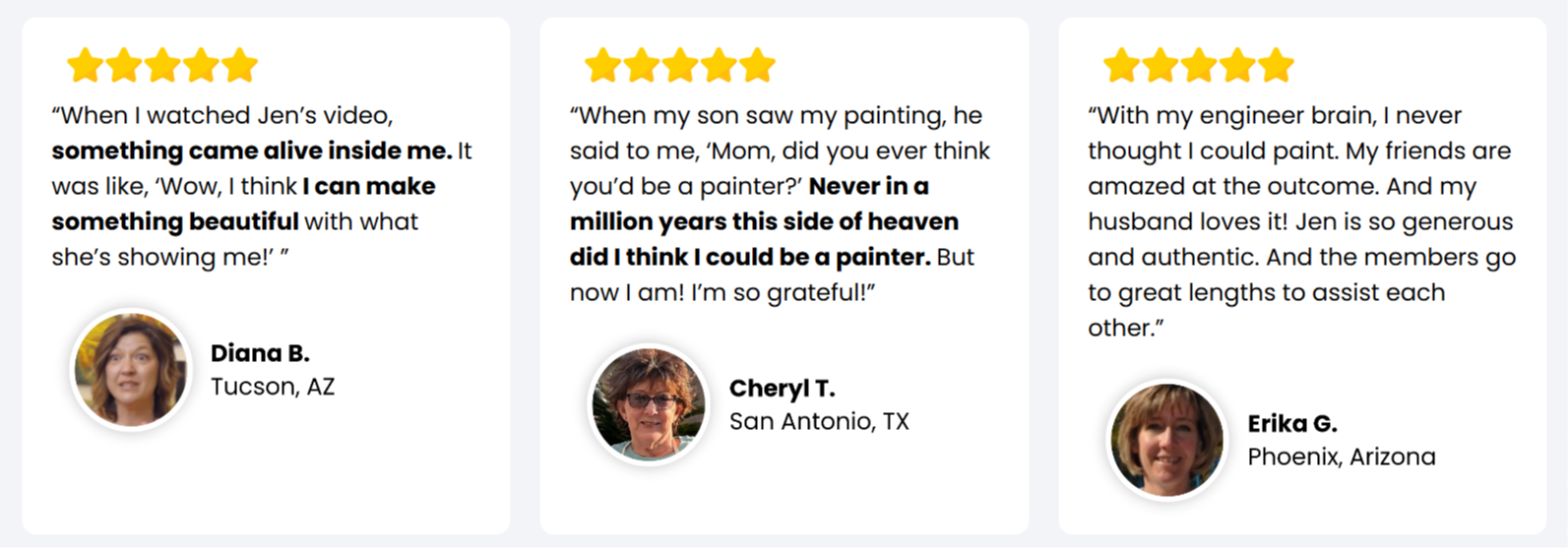 Watch the Free Video: Jen shares how thousands of everyday people discovered the artist within — even if they’ve never painted before.